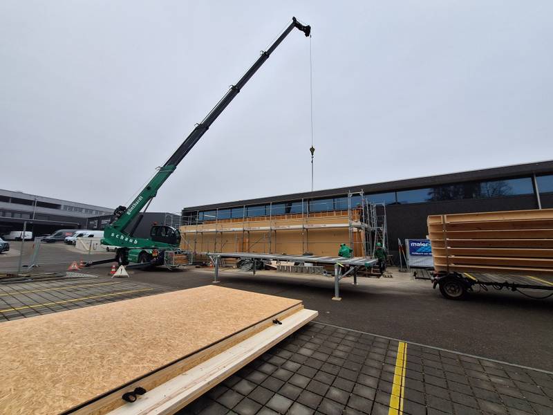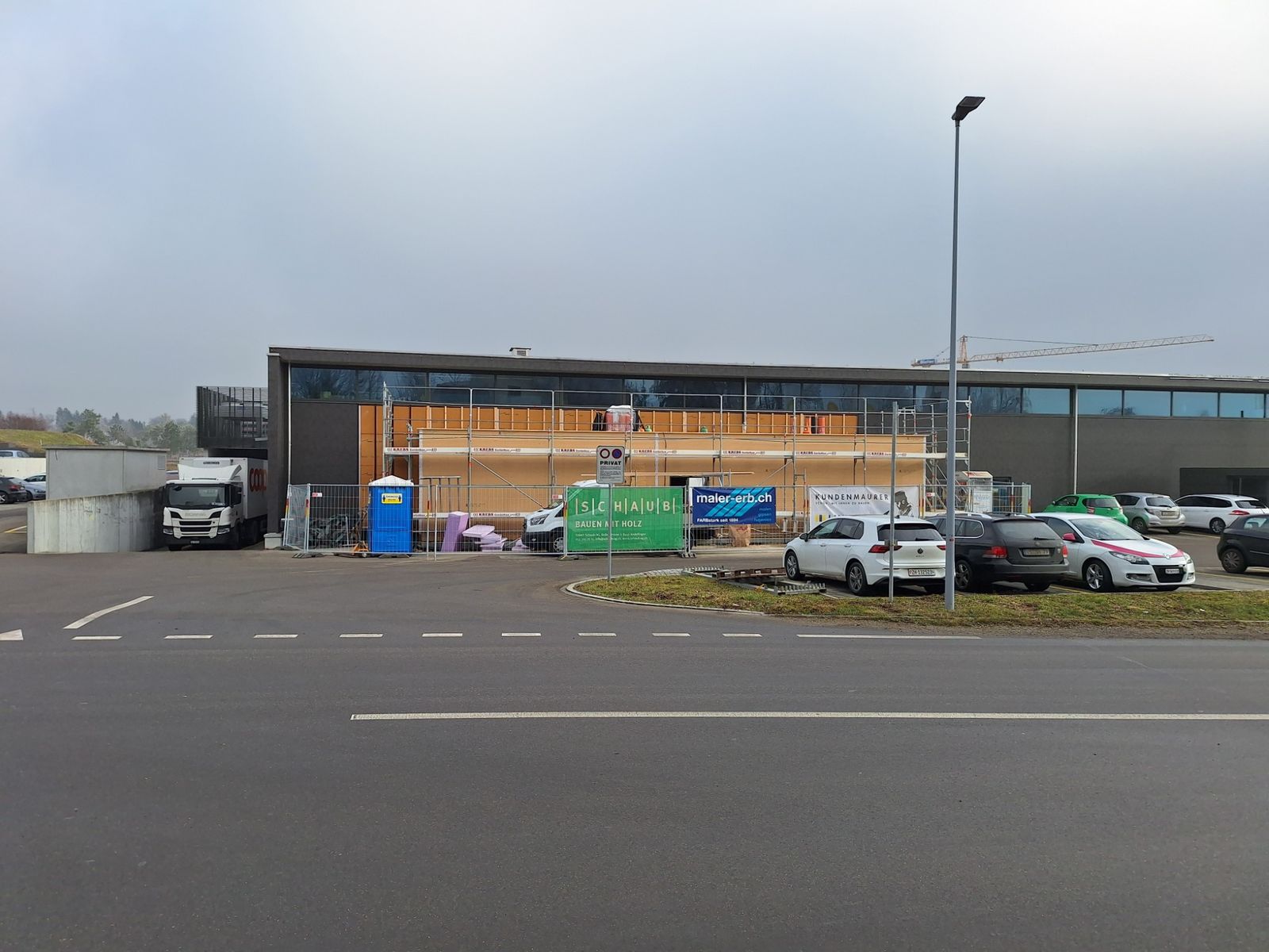 Anbau eines Lagerraums in Holzelementbauweise an bestehendes COOP-Ladengebäude. Ausführung als Totalunternehmerauftrag